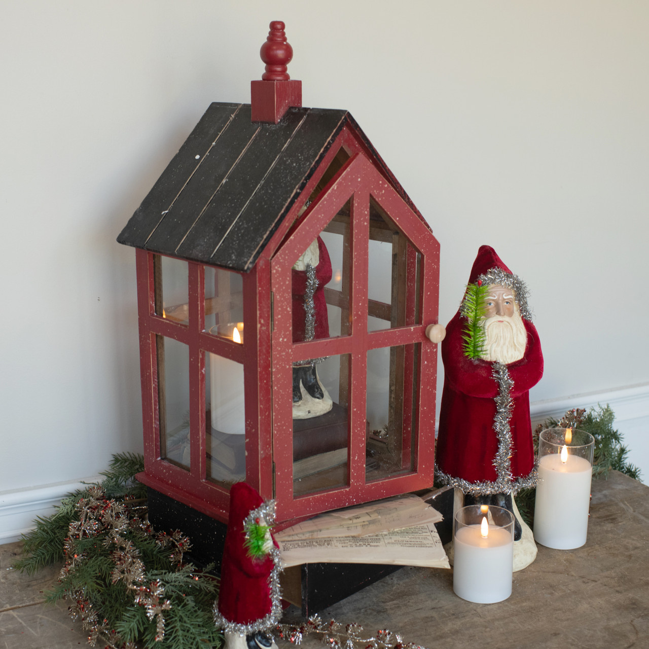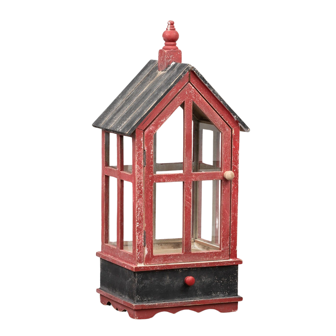 The Architectural Keepsake is a stunning terrarium with a rustic red frame & black accents. This is perfect to add a favorite Santa or snowman on display all awhile greens & trees surround the base of the piece.