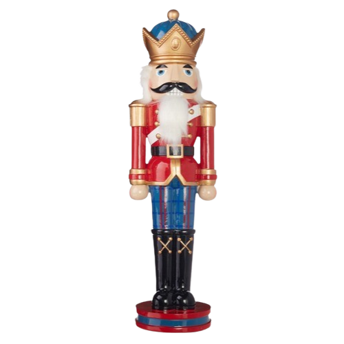 A stunning nutcracker figurine adorned in a vibrant red & blue uniform. Perfect for adding a touch of festive charm to your home decor or as a unique gift for a loved one, Dominick is sure to impress with his classic design & attention to detail.
