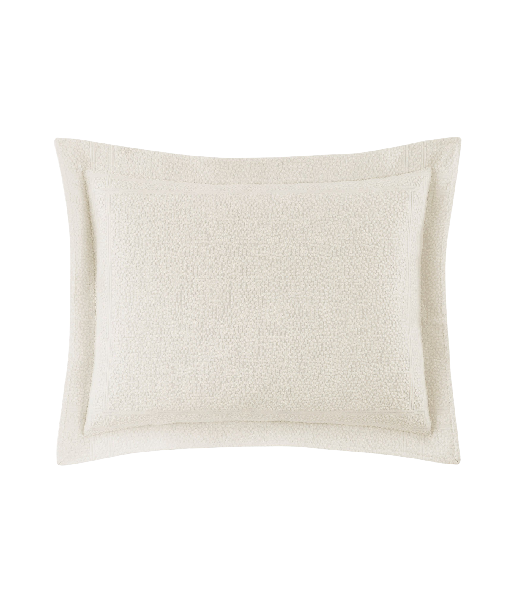 Montauk delights with a sophisticated all over pebble texture & thoughtfully designed frame border. Available in fresh, neutral shades to match any style & palette. Available in a coverlet, shams & bed skirt.