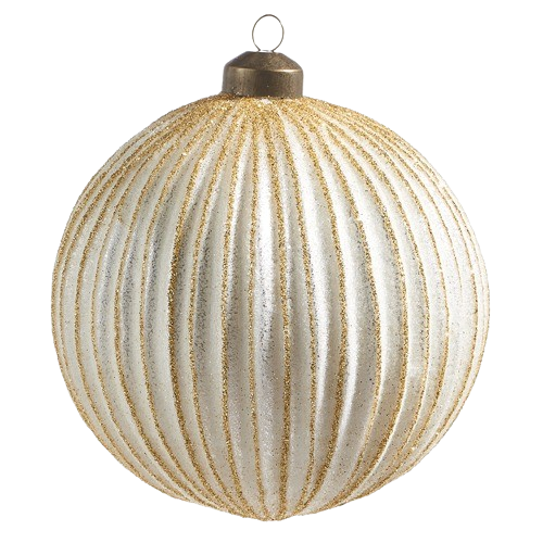 A luxurious & opulent heirloom to be passed on for generations, the O'Tannenbaum glass ornament features a cream base with gold glitter details.