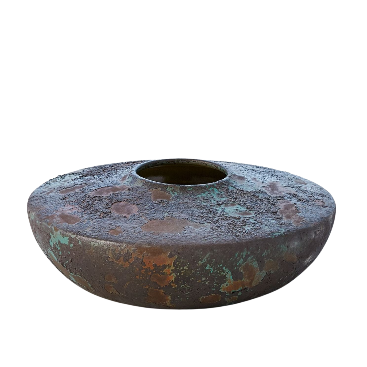 EOD STUDIO Patina Low Vase | The Accessory Collection, Aged Brown - 4.5 Inch x 13.5 Inch x 13.5 Inch